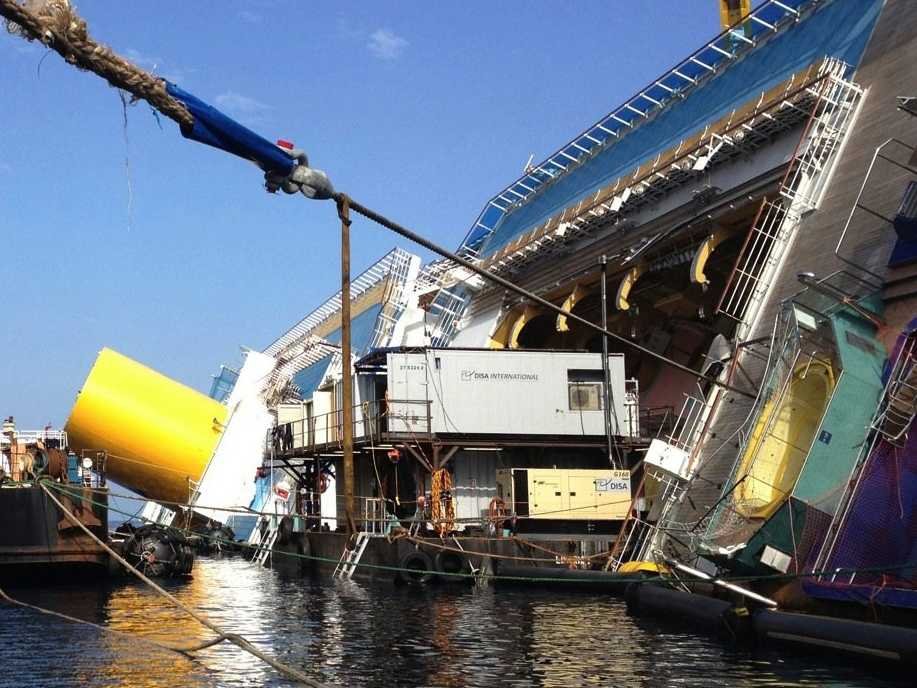 Workers begin salvaging the massive Costa Concordia cruise off the coast of Italy, near the island of Giglio on Monday.
